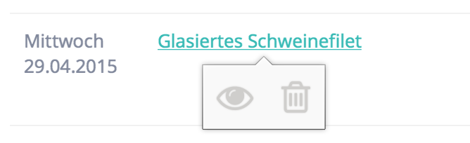 Beim Klick auf ein einzelnes Rezept öffnet sich ein Menu. Das Rezept kann hier aus dem Rezeptkalender entfernt werden.